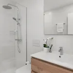 Die Ferienwohnung Obsidian Aquarela verfügt über ein Badezimmer mit einem Haartrockner und Badelaken. Sie können sich auch eine getrennte Toilette und eine Dusche genießen.
